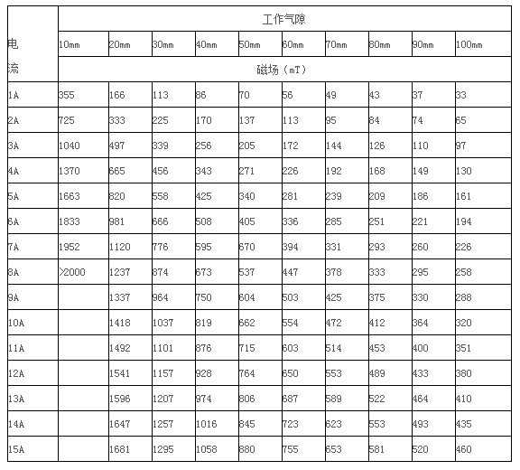 2.4、最大磁場(chǎng) :H>2T,  工作氣隙10mm時(shí)