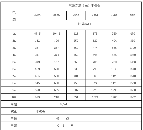 剩    磁:5mT(氣隙10毫米)